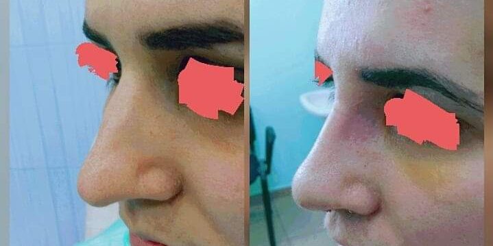 Rezultati I Rhinoseptoplastikes ne momentin e heqies se allcise. Sot pacientia me hunde te re ne forme dhe me rikthim te funksionit normal te saj!