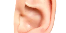 Figura 1.Right old partial ear amputation. Figura 2.Septal graft buried in the retroauricular skin flap pocket 3 months after firs stage technique